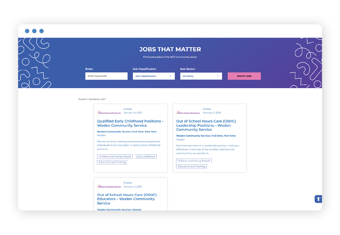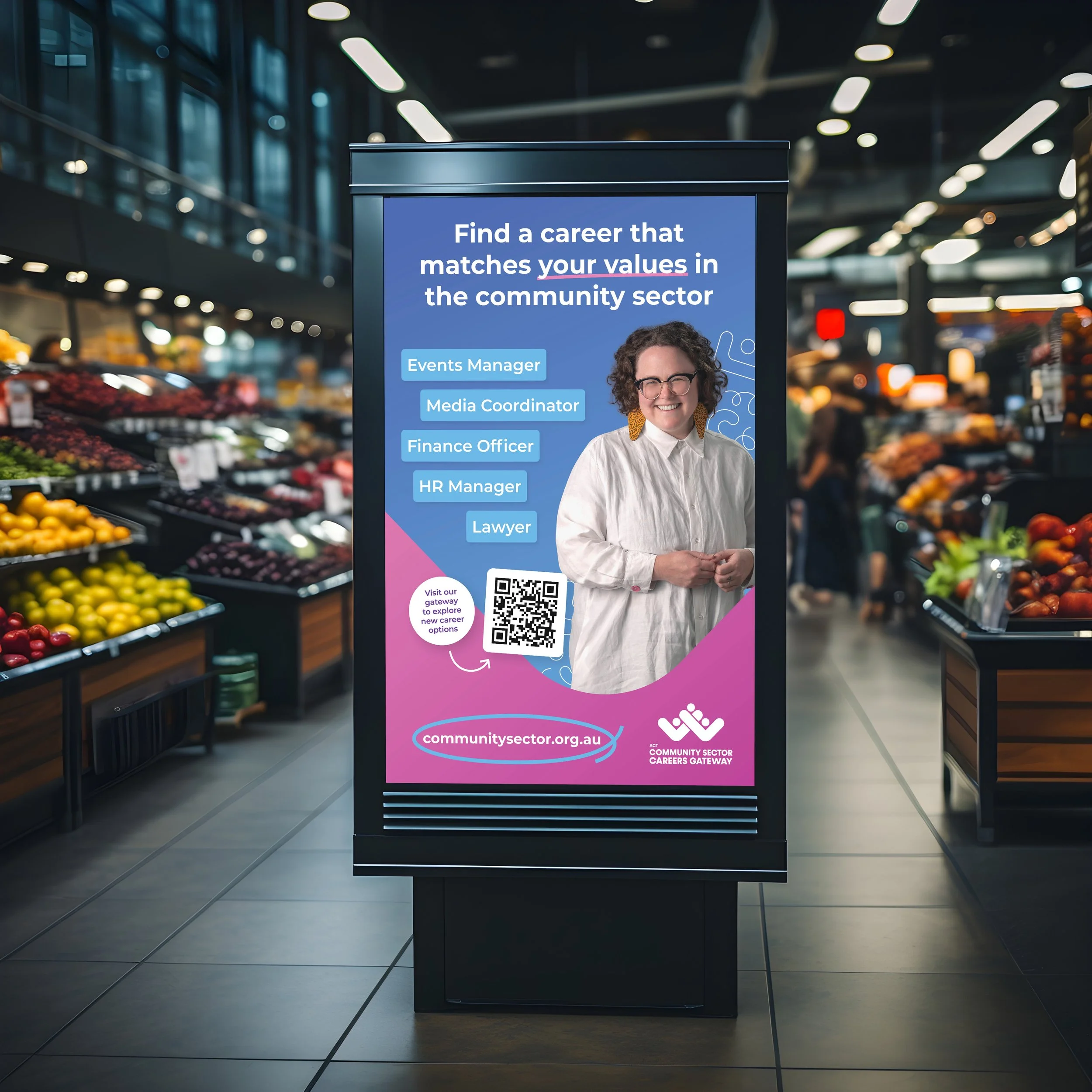 The ads appeared across high-traffic areas like trams, buses, shopping centers, and online via Google, Meta, and LinkedIn. The campaign drove a substantial increase in client enquiries, leading us to add a jobs board on their website. I implemented this feature, along with UX improvements to streamline navigation, helping users find positions more easily while providing a central hub for community sector organisations to post jobs.