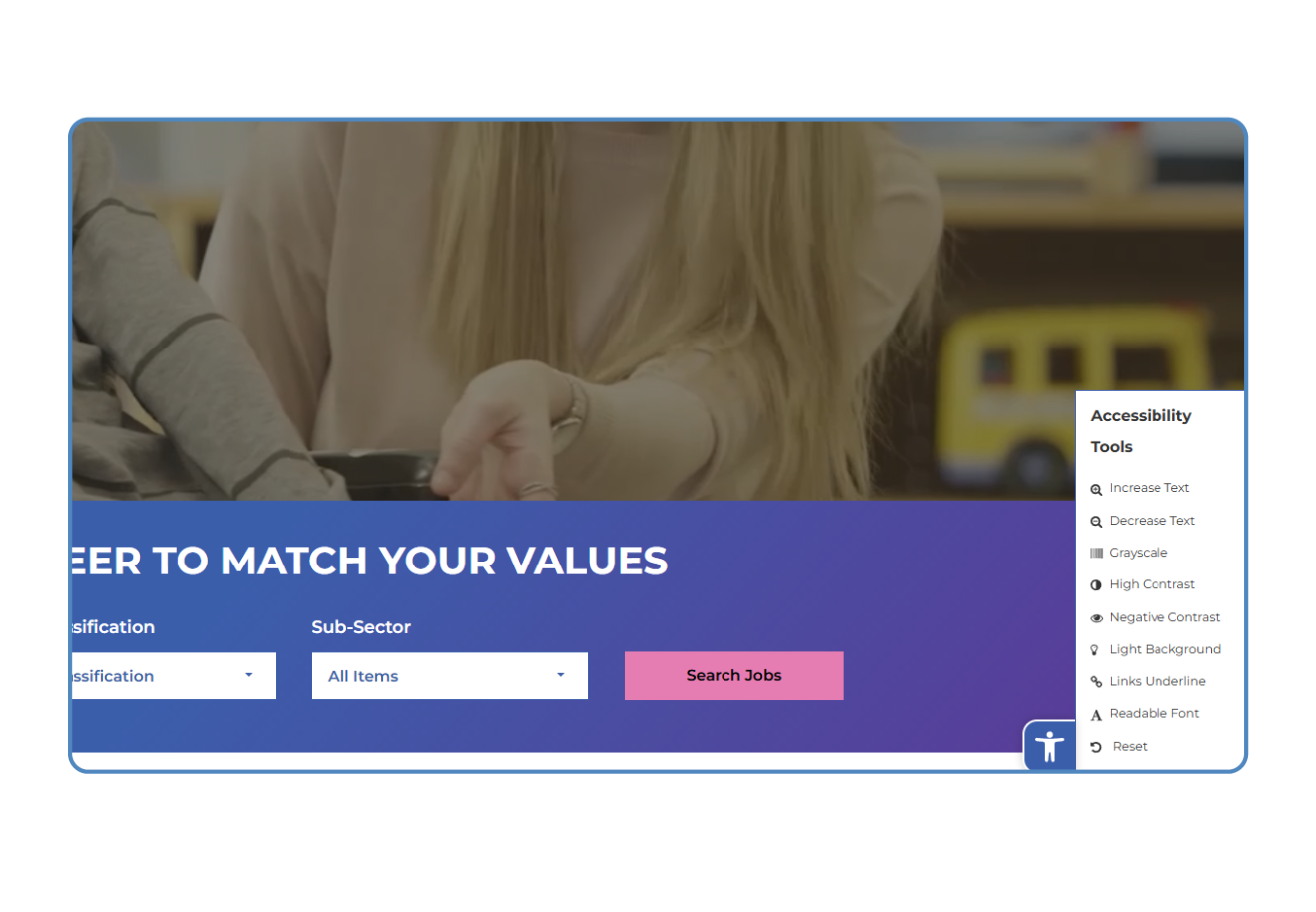 Our developer used an accessibility plugin and alt text for the imagery. I designed the layouts using high contrast colours and proper text hierarchy to cater for screen readers.