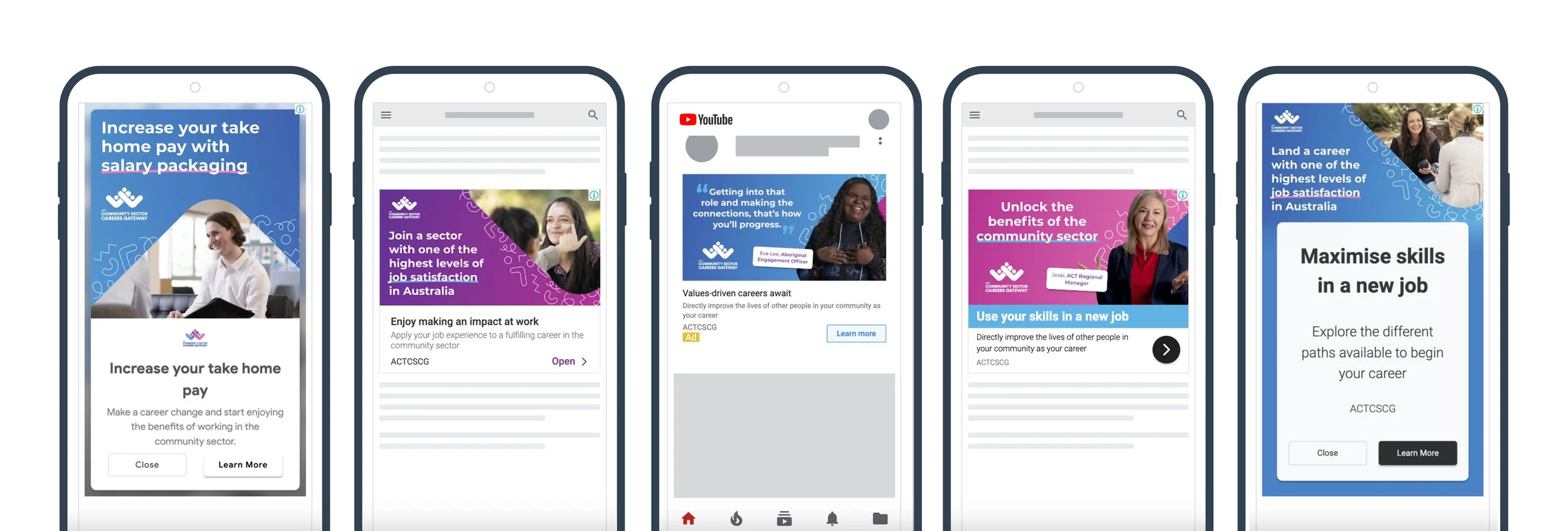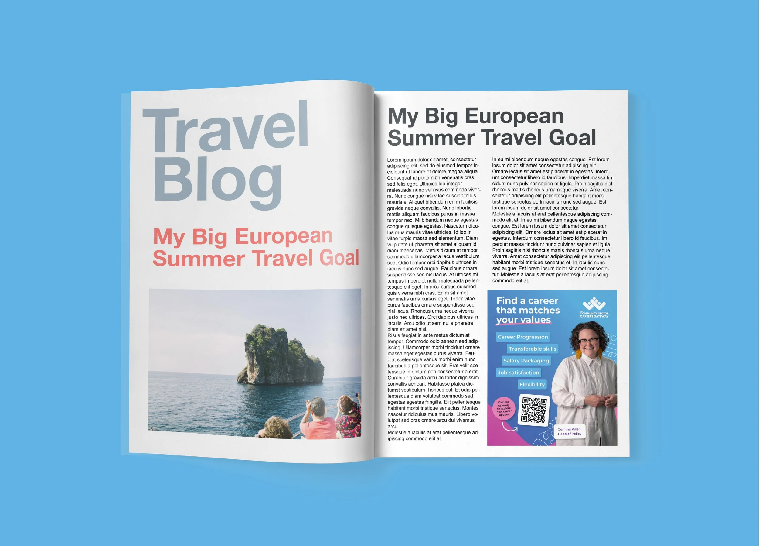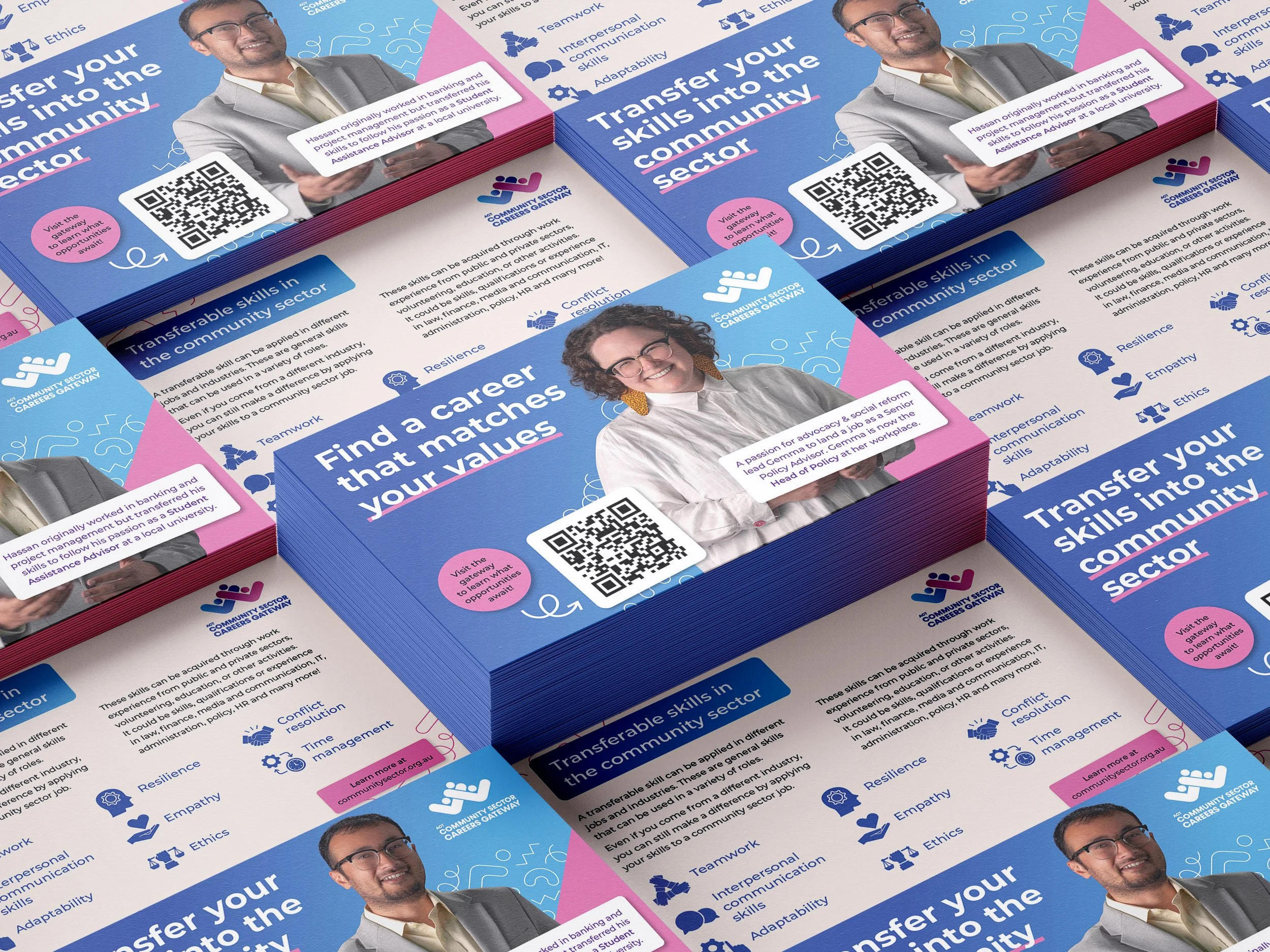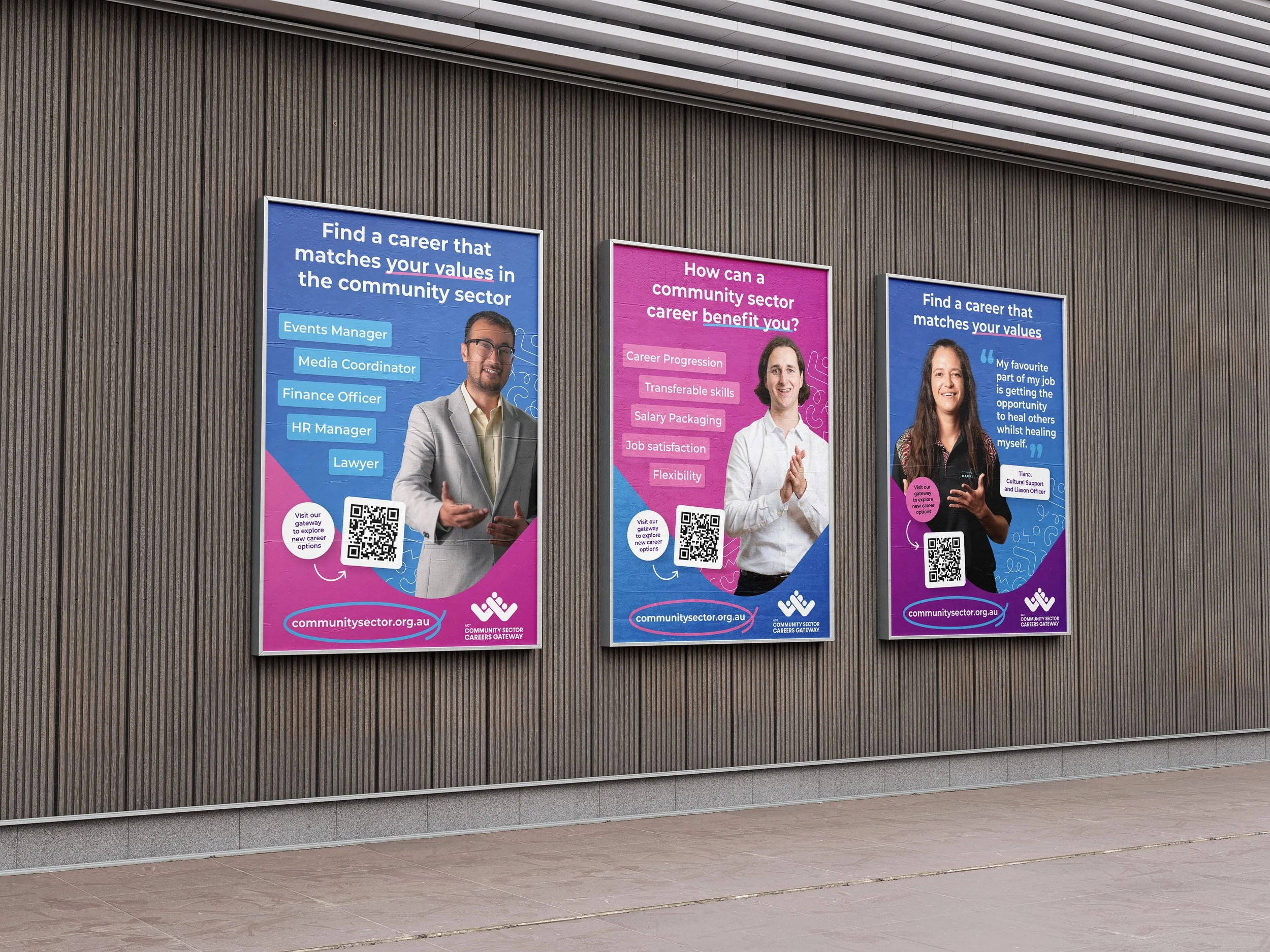 Our task was to create a digital and print campaign to launch the ACT Government’s Community Sector Careers Gateway. Collaborating with a fellow designer, we developed digital and print ads educating Canberra on community sector job opportunities. The challenge was to manage each campaign with a limited budget and tight deadlines.