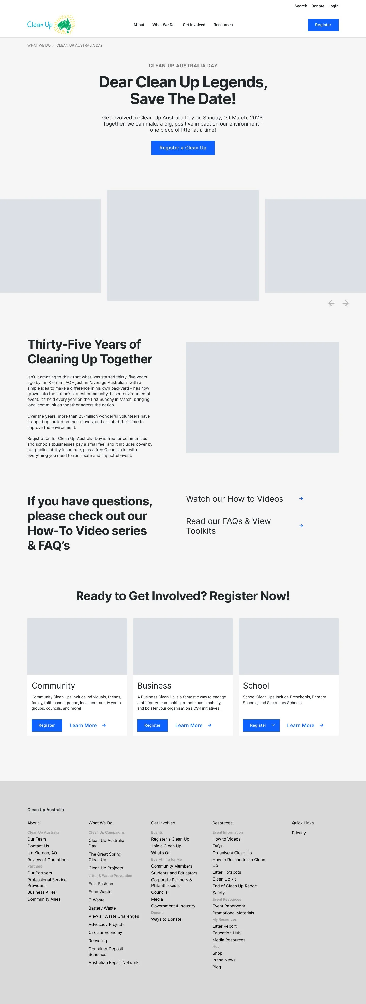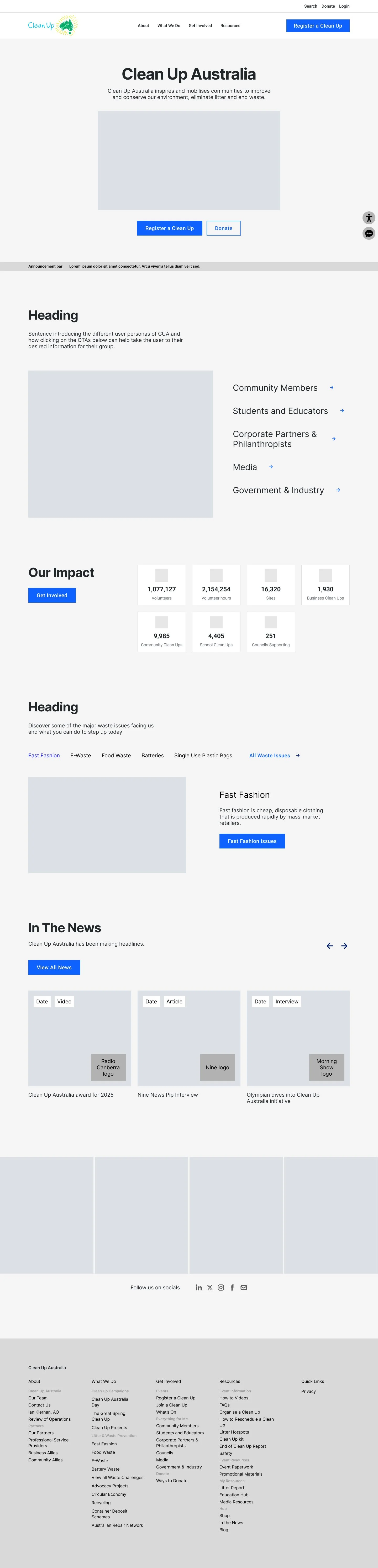 My largest website redesign to date was for Clean Up Australia. The challenge was to create an information architecture that supported a diverse audience, from volunteers and schools to corporate partners and donors. The existing structure lacked clear pathways, making it difficult for users to quickly find relevant information.